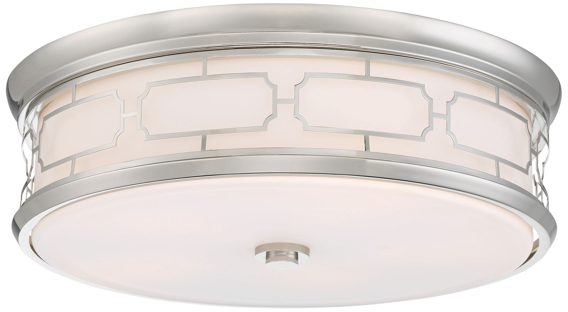 Free shipping & free returns*. The frame is made from metal and features a fabric drum shade that is capped with a plastic diffuser and a round finial in a metallic finish. Possini euro design modern ceiling light flush mount fixture chrome 16 wide silver fabric drum shade for bedroom kitchen hallway. Rated 5 out of 5 stars. Sold and shipped by lamps plus.